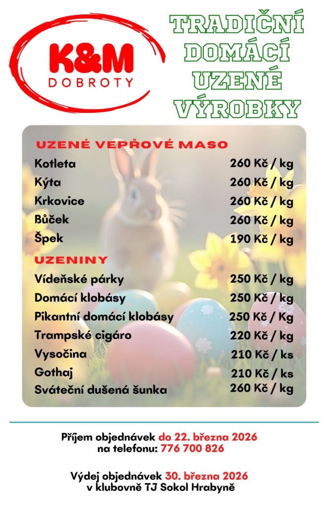 Tradiční kuchyně, na kterou jste byli zvyklí v Restauraci Hrabyňka se mění na K&M DOBROTY! Provozování Restaurace Hrabyňka jsme sice ukončili, ale pokračujeme dále v trošku jiném formátu. Stále si u nás můžete objednat všechny Vámi oblíbené dobroty (žebírka, burgery, guláše, buřty na pivu, řízečky a mnoho dalšího) a navíc Vám nově nabízíme možnost objednat cukrářské výrobky na Vaše přání. Hlavní změnou je tedy objednání s osobním odběrem u nás v Hrabyni nebo Vám můžeme připravené jídlo přivést až na místo konání Vaší akce.